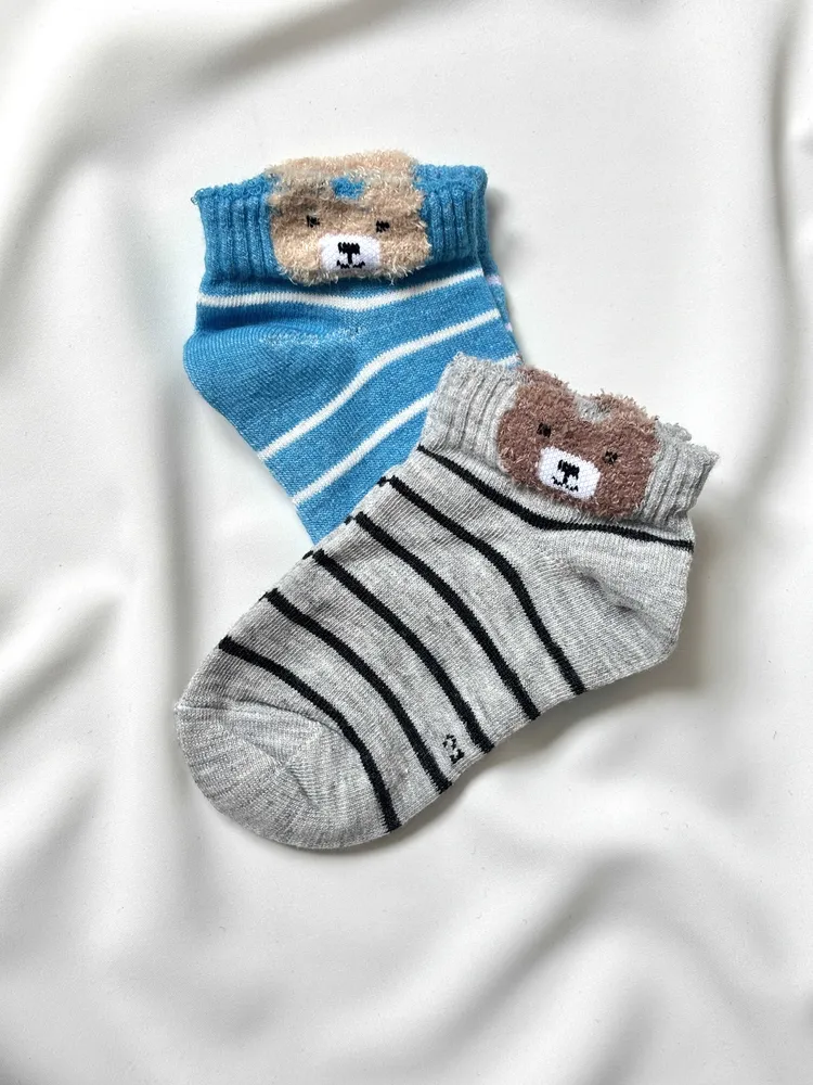 جوراب مچی نوزادی طرح تدی راه راه | سایز 0 و 1