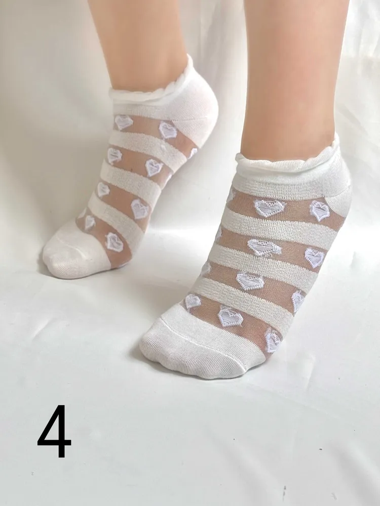 جوراب مچی زنانه طرحدار سفید و مشکی | 5طرح