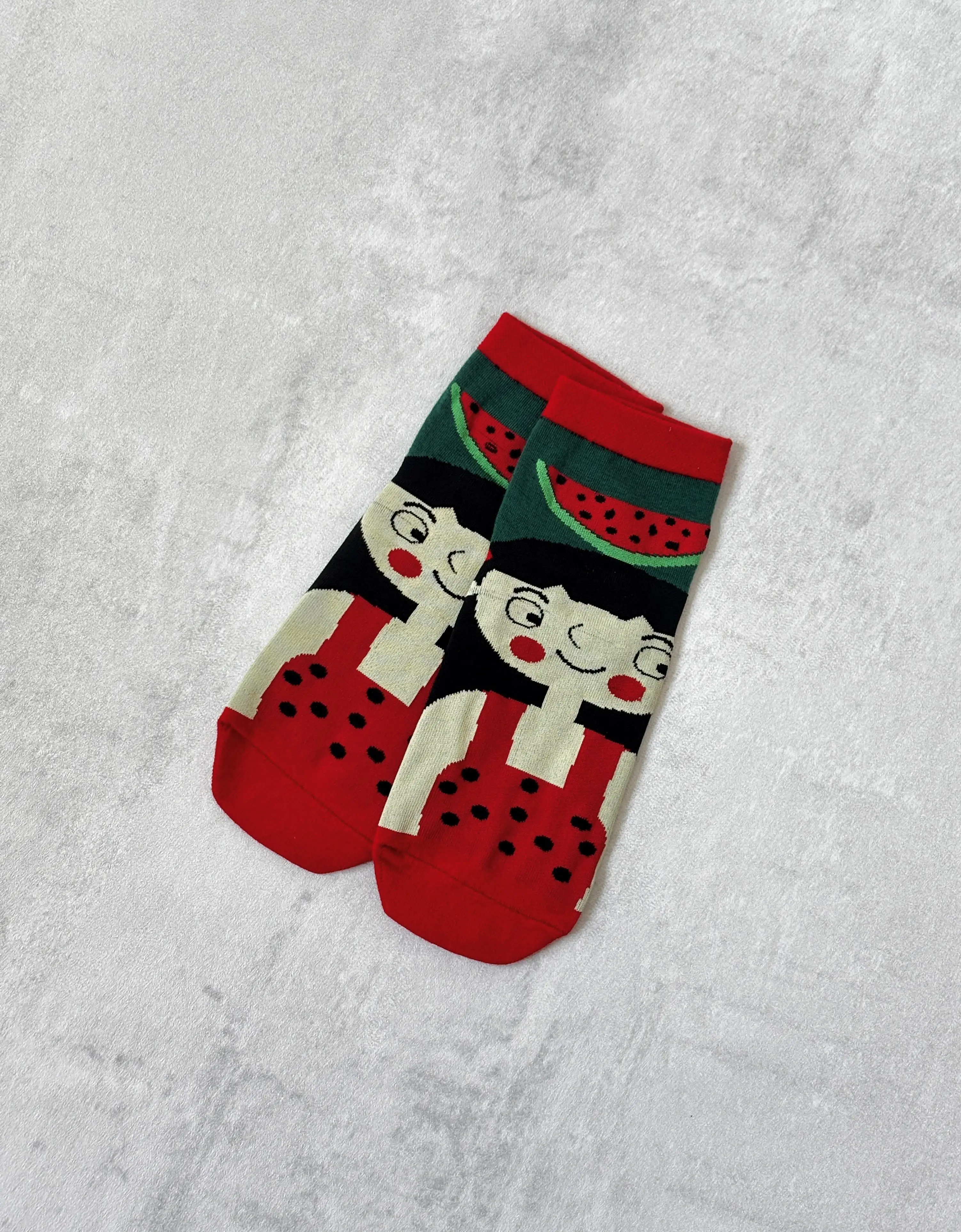 جوراب نیمساق بچگانه یلدایی - طرح دختر و هندوانه