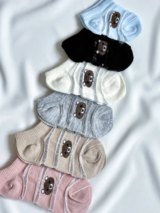 جوراب مچی بچگانه توری طرح تدی | 4سایز
