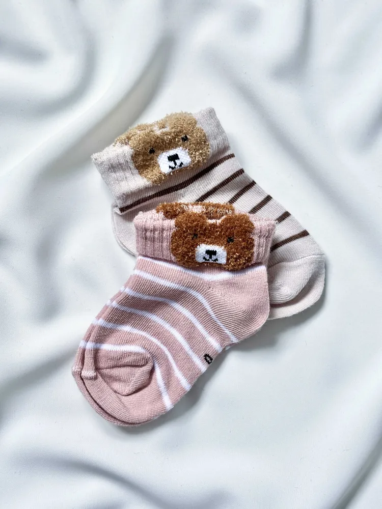 جوراب مچی نوزادی طرح تدی راه راه | سایز 0 و 1