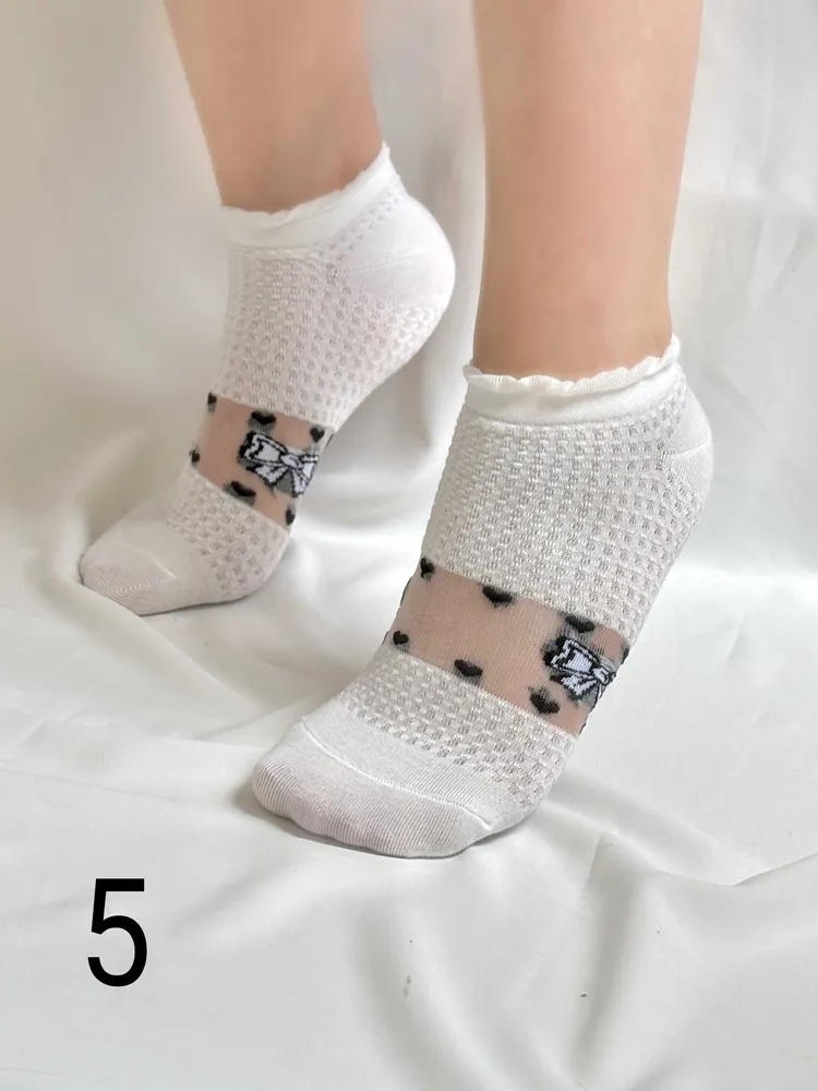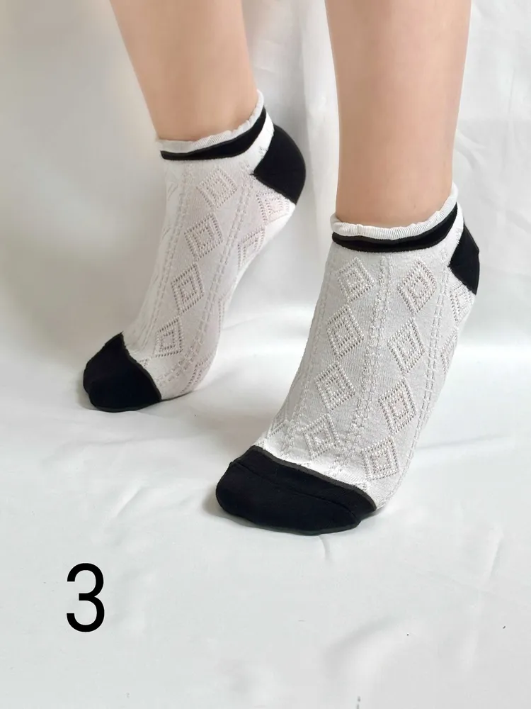 جوراب مچی زنانه طرحدار سفید و مشکی | 5طرح